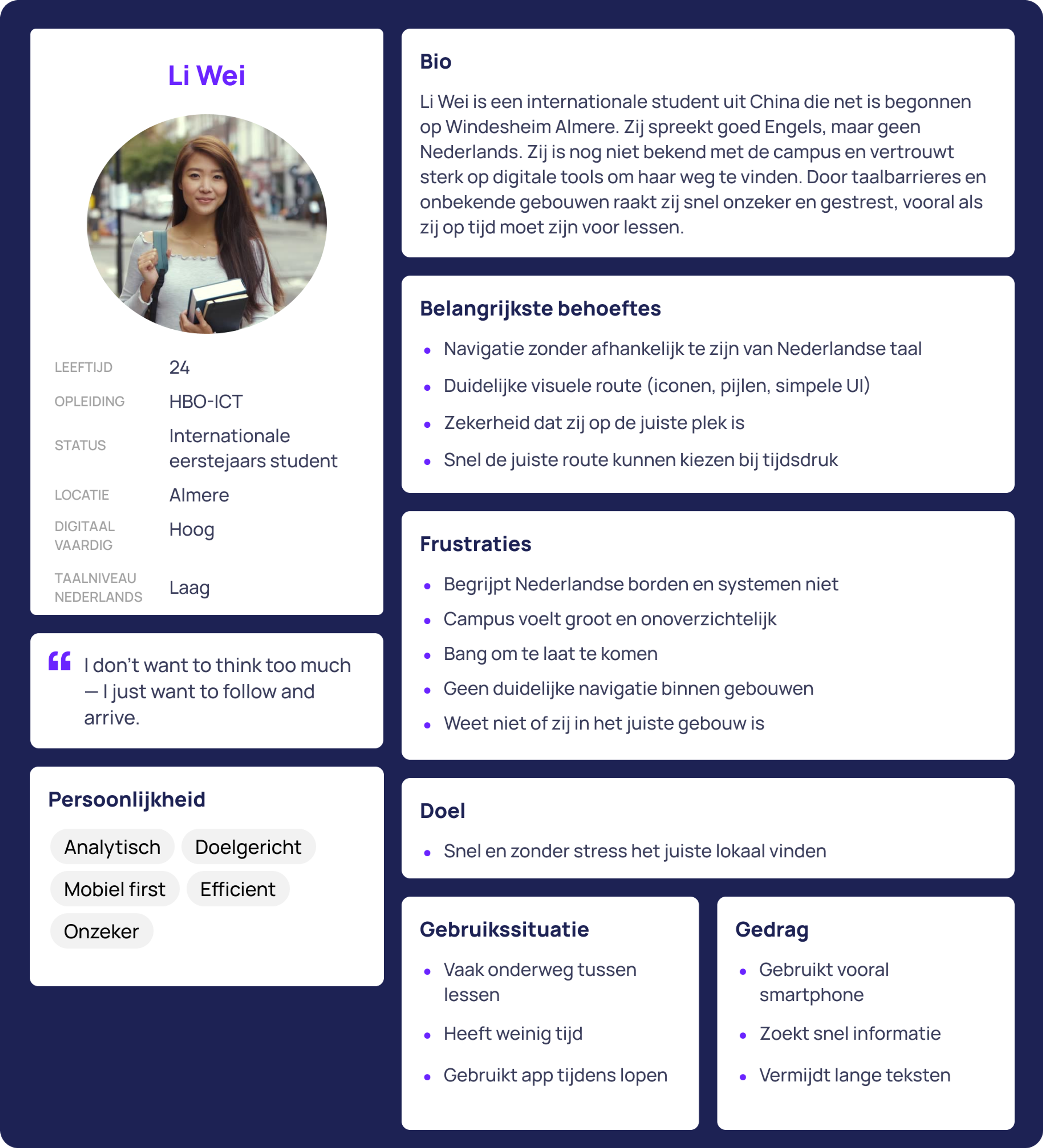 - Frustraties: Nederlandse borden, grote campus, geen duidelijke navigatie binnen gebouwen